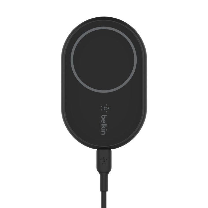 El cargador de coche **Belkin WIC004BTBK** está diseñado para ofrecer una carga inalámbrica rápida, segura y conveniente para usuarios de iPhone con tecnología **MagSafe**. Es ideal para quienes necesitan mantener su dispositivo cargado durante trayectos diarios o viajes largos, con una instalación sencilla en el salpicadero y un diseño elegante y compacto. Incluye todo lo necesario para una experiencia de carga sin interrupciones: cable USB-C de 1,2 m y adaptador de corriente para mechero USB-C de hasta 30 W.