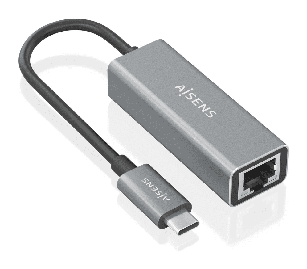 Conversor USB3.1 Gen1 USB-C a ethernet Gigabit 10/100/1000 Mbps, Gris, 15cm CONVERSOR AISENS USB3.1 GEN1 USB-C A ETHERNET GIGABIT GRIS 15CM La solución más rápida de USB-C a Gigabit ethernet que garantiza gran velocidad de transferencia con USB-C macho en un extremo y RJ45 hembra en el otro.