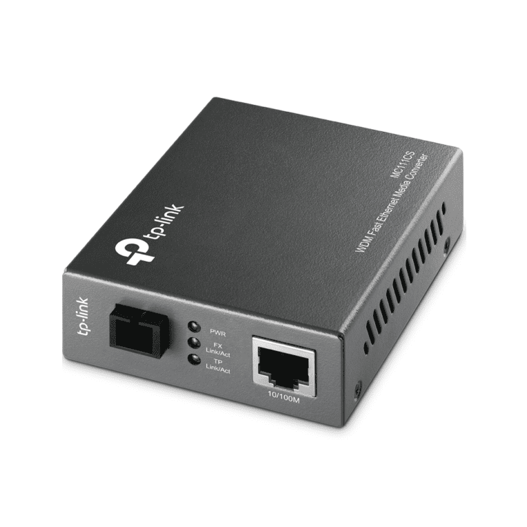 MC111CS 1x 100M SC, 1x 100M RJ45, IEEE 802.3, IEEE 802.3u, IEEE 802.3x CONVERTIDOR TP-LINK RJ45 10/100 A FIBRA MONOMODO SC – Cumple las normas 802.3u 10/100Base-TX, 100Base-FX.- Adopta la tecnología WDM, transmite y recibe datos sobre una sola fibra ópticaEl MC111CS es un convertidor multimedia diseñado para convertir fibra 100BASE-FX a cable 100Base-TX o viceversa.Con la tecnología WDM, el MC111CS solamente necesita un cable de fibra óptica para transmitir y recibir datos, lo que le ahorra la mitad del coste del cableado.Diseñado conforme a las normas IEEE 802.3u 10/100Base-TX y 100Base-FX, el MC111CS se utiliza con fibra óptica monomodo utilizando el conector SC.El MC111CS soporta láser de onda corta (SX) a una tasa de transferencia de velocidad completa de cable.Funciona a 1550nm transmitiendo datos y a 1310nm recibiendo datos.Por tanto, el aparato conectado al MC111CS debe funcionar a 1310nm transfiriendo datos y a 1550nm recibiendo datos.El convertidor multimedia MC112CS de TP-LINK es uno de los modelos que puede conectarse al MC111CS.Otras características de este módulo son la posibilidad de uso como dispositivo independiente (sin necesidad de bastidor o con el bastidor del sistema de 19? de TP-LINK?s, Auto MDI/MDI-X para el puerto TX, Autonegociación de modo duplex en el puerto TX, y LEDs de estado en el panel frontal.El MC111CS transmite mediante fibra óptica monoimodo aumentando la distancia de la fibra hasta 20 kilómetros.