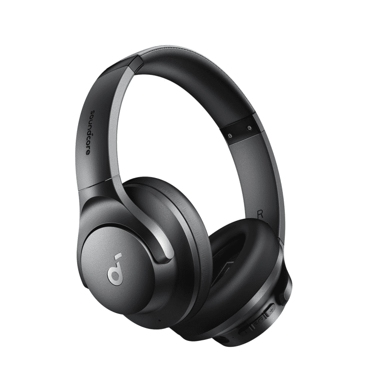 Cancelación activa de ruido, 30 horas de reproducción, audio de alta resolución, graves intensos, auriculares inalámbricos supraaurales para viajes, trabajo y más- Audio de alta resolución : Tonos medios equilibrados, agudos nítidos y nuestra exclusiva tecnología BassUp con controladores de audio de 40 mm para una reproducción de sonido de alta resolución profunda e intensa. El audífono Soundocore Q20 cubre frecuencias de hasta 40 kHz.- Cancelación activa de ruido : Reduce eficazmente hasta el 90% de todo el ruido externo, como el de automóviles y aviones, gracias a sus 4 micrófonos ANC de alta sensibilidad incorporados. Este audífono es ideal para escuchar música mientras viajas o estás en ambientes ruidosos- Más Bajo!: Nuestra exclusiva tecnología BassUp analiza el perfil de sonido en tiempo real y aumenta automáticamente las frecuencias bajas en un 43%. Escucha más, ¡siente más!- Música sin parar : ¡Disfruta de 30 horas de reproducción inalámbrica en modo ANC o incluso 60 horas de reproducción en modo estándar! ¡Y cuando tengas prisa, tus auriculares se cargarán para 4 horas de música en 5 minutos!- La comodidad es lo primero : Las almohadillas de espuma suave y aterciopelada de los auriculares Q20, integradas en cuero suave, te brindan comodidad y flexibilidad. Las articulaciones giratorias de la diadema encuentran la posición ideal para la forma de tu cabeza.- Certificado TCO: para una mejor sostenibilidad.