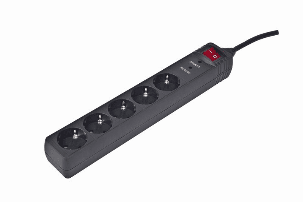 Regleta con proteccion contra sobretensiones, 5 enchufes, 3 m, negro