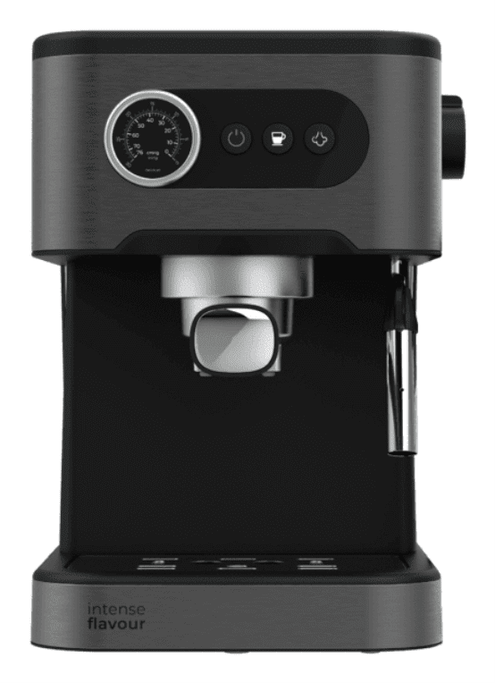 Cafetera express: prepara cafés espressos deliciosos y capuccinos cremosos de manera rápida y fácil.Pantalla con botones. Configura la cafetera de manera sencilla y rápida con su cómoda e intuitiva pantalla con botones.Vaporizador orientable con protección: espuma leche, emite agua caliente para infusiones y calienta líquidos.Brazo con doble salida: prepara hasta dos cafés a la vez gracias a su brazo con doble salida.Depósito de agua extraíble: gran capacidad de 1,5 litros te permitirá preparar una gran cantidad de café sin necesidad de estar rellenando constantemente el depósito.Superficie calientatazas: almacena y atempera tus tazas antes de prepararte el café.Fácil limpieza: su bandeja de goteo desmontable facilita la limpieza de tu cafetera.