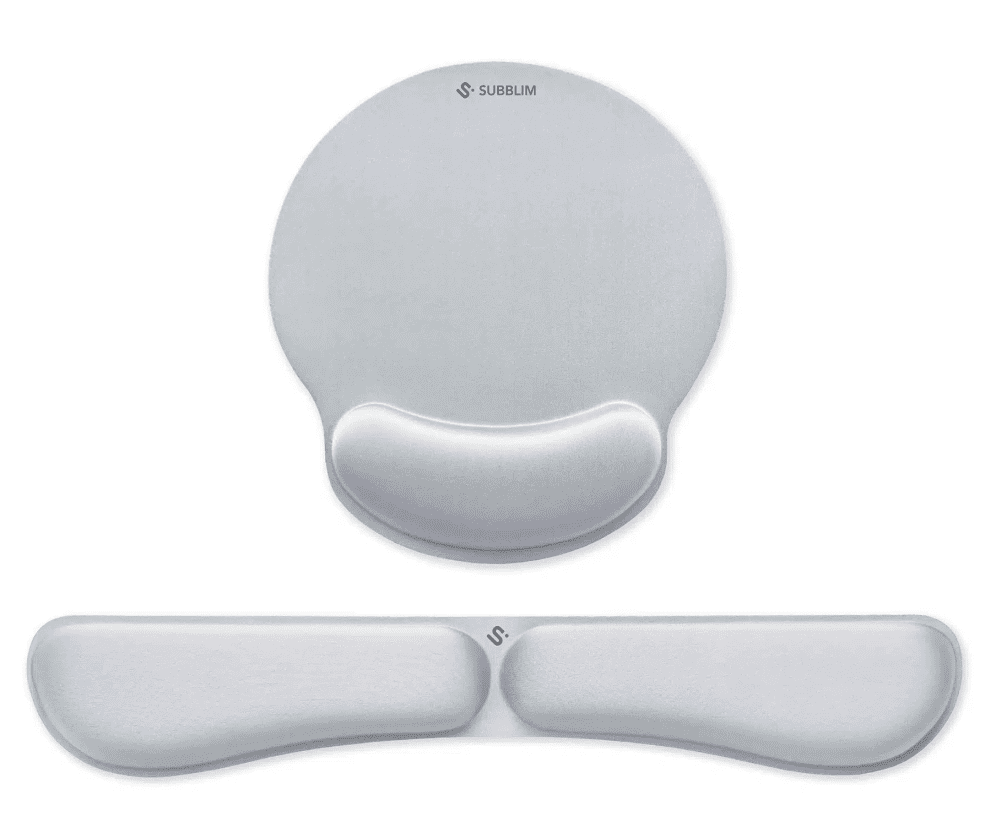 Pack Ergo Memoryflex ? Conjunto de alfombrilla para ratón y reposamuñecas para teclado Plata PACK SUBBLIM ERGO MEMORYFLEX -REPOSAMUÑECAS TECLADO Y RATON PLATA Descubre el set definitivo para cuidar tus muñecas y mejorar tu rendimiento frente al ordenador. La alfombrilla SUBBLIM incorpora un reposamuñecas integrado de espuma elástica de alta densidad que se adapta gradualmente a la anatomía de tu mano, aliviando la presión sobre tendones y nervios y reduciendo el riesgo de fatiga o síndrome del túnel carpiano.El reposamuñecas para teclado, también de espuma elástica y plegable, mantiene ambas manos alineadas para que escribas y juegues con total comodidad.La superficie microtexturizada e impermeable ofrece un deslizamiento sedoso y un seguimiento preciso, perfecto tanto para ratones ópticos como láser. Su revestimiento hidrófugo permite limpiar fácilmente salpicaduras, prolongando la vida útil del producto.Con su base de goma antideslizante y patrón tipo panal, la alfombrilla permanece fija incluso durante movimientos rápidos en sesiones de gaming o diseño. Además, los bordes termosellados previenen el deshilachado, aumentando su durabilidad.Medidas optimizadas para cualquier escritorio:- Alfombrilla con reposamuñecas: 255 × 230 × 25 mm- Reposamuñecas de teclado: 440 × 80 × 20 mmLigero y compacto, este pack cabe fácilmente en tu mochila o maletín, ideal para el trabajo híbrido y los desplazamientos. Incluye 3 años de garantía y servicio técnico local en España.Beneficios clave:- Alivio inmediato de la presión y el dolor en muñecas- Control milimétrico del ratón para oficina y gaming- Fácil limpieza y resistencia al desgaste diario- Compatible con teclados mecánicos, de membrana y portátilesMejora tu ergonomía, protege tu salud y lleva tu productividad al siguiente nivel con SUBBLIM.Ergonomía PremiumEspuma elástica de alta densidad que se adapta y alinea la muñeca. Previene la fatiga y el síndrome del túnel carpiano en largas sesiones de trabajo o gaming.Control y PrecisiónTejido de microfibra de baja fricción para un deslizamiento sedoso y seguimiento milimétrico. Compatible con ratones ópticos y láser. Ideal para e-sports, diseño gráfico y productividad avanzada.Base que no se mueveGoma natural antideslizante con patrón en forma de panal que se fija al escritorio, evitando desplazamientos incluso durante movimientos rápidos.Resistente & Fácil de limpiarRevestimiento impermeable y bordes moldeados a alta temperatura para evitar deshilachados. Limpieza rápida con un simple paño húmedo.