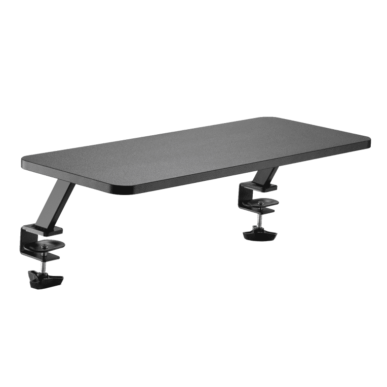 Elevador de monitor para escritorio con abrazadera SOPORTE EWENT DE ESCRITORIO PARA MONITOR Brinda Espacio Adicional en Su Escritorio¡Demasiado desorden en el escritorio puede volverle loco! Este Elevador para Monitor con Abrazadera tiene como objetivo ayudar a los usuarios a resolver estos problemas elevando el monitor a posiciones óptimas y creando espacio adicional en su escritorio. Las abrazaderas de alta resistencia hacen que se fije a cualquier escritorio, el tablero de partículas ecológico es resistente a la humedad y proporciona un rendimiento duradero pero asequible.Espacio de trabajo adicionalDisfrute de un espacio de trabajo organizado y sin desorden con este soporte para monitor que ahorra espacio, 25,6″ x 10,2″ (65 cm x 26 cm). El estante extra ancho para monitor proporciona un amplio espacio para guardar su monitor y accesorios de escritorio. Use el área grande debajo para almacenar un teclado de tamaño completo y otros artículos, para tener todo al alcance de la mano.Instalación sencillaLa instalación es rápida y sencilla, su abrazadera se acopla fácilmente al escritorio sólo girando las mariposas (grosor de tablero máximo de 1,3″ (33 mm). Es la solución definitiva para incrementar el espacio en su escritorio sin tener que añadir más mesas u otro mobiliario.Soporte estable con sujección a mesa mediane abrazadera para su monitorCon su base de sujección estable y su plataforma robusta, el elevador de monitor para escritorio con abrazadera proporciona un soporte estable para un solo monitor de hasta 34″, con una capacidad máxima de peso de hasta 44 lb (20 kg). Debido a su vesatilidad, este soporte puede ser usado perfectamente para levantar sus dispositivos como ordenador personal, Laptop o impresora, liberando espacio debajo del escritorio o del mostrador.
