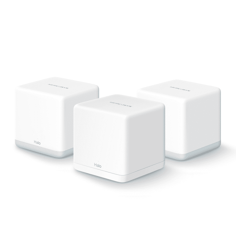 2.4 GHz (300 Mbps), 5 GHz (867 Mbps), 802.11 a/b/g/n/ac, 2x RJ-45, 88 × 88 × 88 mm, 3-pc(s) AC1200 WHOLE HOME MESH WI-FI SYSTEM 3-PACK WiFi rápido de doble banda de hasta 1,2 GbpsCada unidad del sistema Halo WiFi ofrece WiFi de doble banda de alta velocidad, que ofrece velocidades combinadas de hasta 1,2 Gbps. Ya sea que esté disfrutando de películas HD, descargando bibliotecas completas de datos o jugando en línea, las velocidades WiFi mejoradas de Halo satisfacen las necesidades de sus dispositivos. Transmisión fluida en cada esquinaNo hay nada peor que conexiones poco confiables y velocidades de Internet que no pueden mantenerse al día con su estilo de vida digital. Halo funciona como un sistema unificado para garantizar una señal Wi-Fi potente en todos los rincones de su hogar, brindando una experiencia de red increíblemente rápida y estable. La interrupción y el almacenamiento en búfer serán cosa del pasado.Cobertura mejorada y transmisión fluida en todos los rinconesEl sistema Halo conecta automáticamente sus teléfonos o tabletas al nodo más rápido, brindando una experiencia de red verdaderamente perfecta. No más caídas repentinas de señal o WiFi retrasado cuando caminas por la casa.Potentes amplificadores de señalLos amplificadores y receptores de señal refinados emiten señales WiFi fuertes y estables.formación de hacesAdmite la tecnología Beamforming para concentrar la fuerza de la señal inalámbrica hacia los dispositivos.AutosanaciónElige automáticamente la mejor ruta de conexión entre Halos según la estabilidad de la red.Capacidad mejoradaHalo H32G aprovecha el poder de dos unidades AC1200 separadas, brindando WiFi súper rápido y sin interrupciones para hasta 100 dispositivos. Con la tecnología MU-MIMO, Halo mantiene sus teléfonos, computadoras y todos los dispositivos IoT conectados simultáneamente y funcionando al máximo rendimiento. Modo de enrutadorCrea una red inalámbrica para todos tus dispositivos WiFiModo de punto de accesoAmplía una red cableada y la convierte en inalámbricaLa aplicación MERCUSYS lo ayuda a configurar en minutosSin comprender los conocimientos técnicos ni leer las instrucciones de instalación por adelantado, simplemente siga las instrucciones en pantalla con la aplicación MERCUSYS para configurar su red mesh en minutos.Potentes controles parentalesAdministre fácilmente el tiempo y el contenido en línea de sus hijos para crear un entorno en línea seguro y saludable.