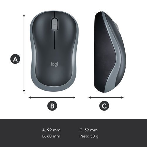 Ratón inalámbrico Logitech® M185. Un ratón sencillo y fiable con tecnología inalámbrica Plug and Play. Obtendrás la fiabilidad de un cable con la comodidad y la libertad de la tecnología inalámbrica: los datos se transfieren rápidamente sin apenas retrasos ni interrupciones. La duración de pilas de un año también significa menos molestias. Además, recibes una garantía limitada de tres años de hardware.
